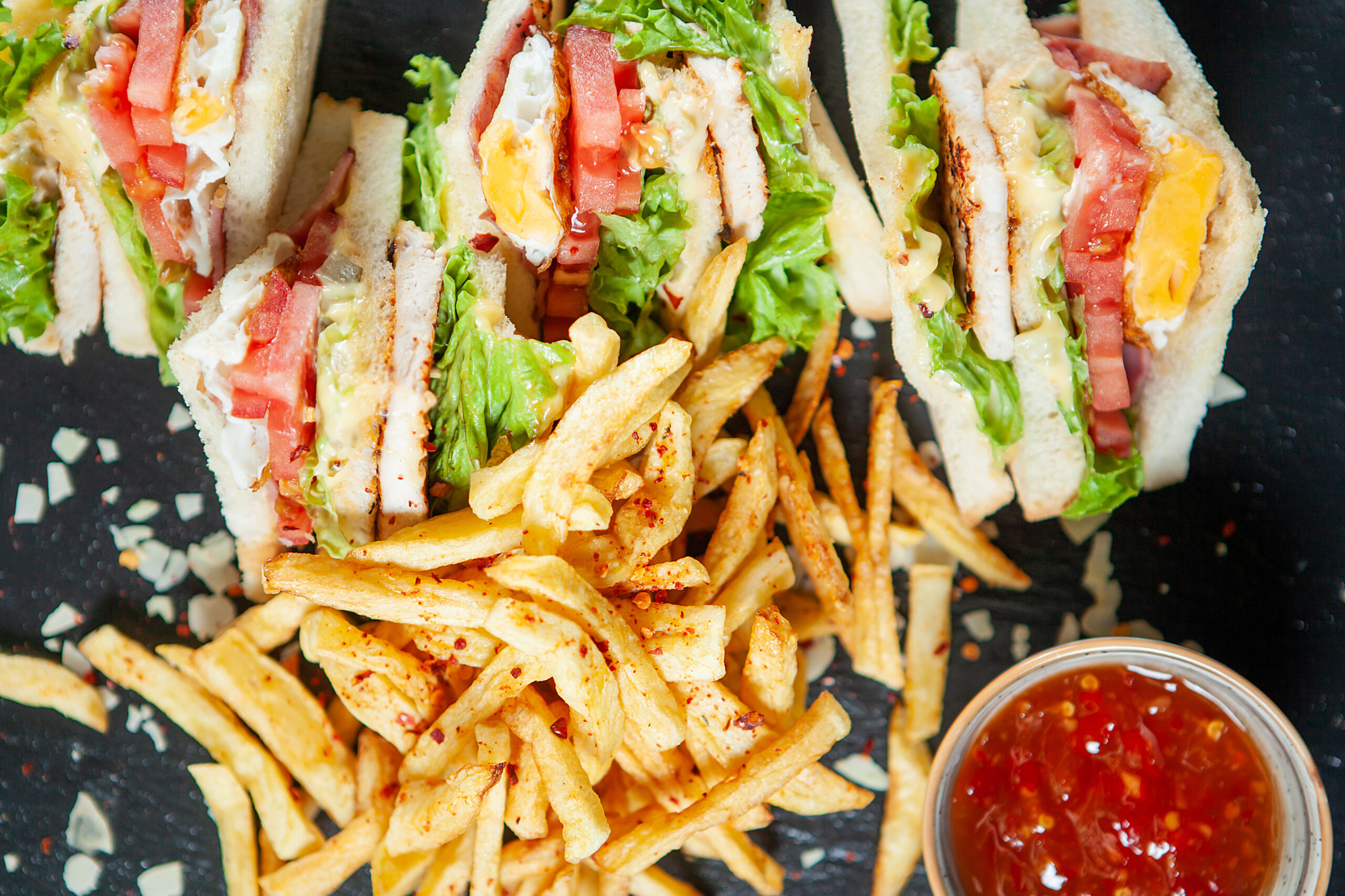 Savor every bite of our Grilled Chicken Club, a masterpiece sandwich crafted for the ultimate flavor experience. Tender, juicy grilled chicken breast is paired with a delightful mix